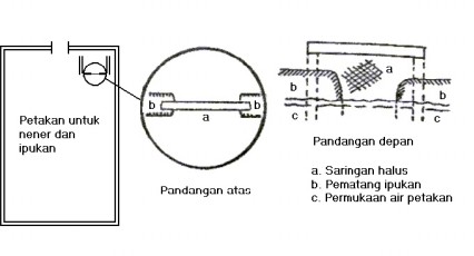 Petakan untuk nener, gelondongan dan penangkapan (pengumpulan) dilengkapi dengan pintu-pintu atau gorong-gorong, yang dipasang rapi dan diberi saringan. Yang terutama perlu diperhatikan ialah : petakan untuk nener jangan sampai kemasukan telur-telur maupun larva predator misalnya kakap, kerapu, belut dan lain sebagainya. Pada pintu perlu dipasang saringan nylon yang halus atau bahan yang serupa. Bisa juga dipergunakan saringan-saringan yang berbentuk kantong dari nylon yang halus, yang dipasang pada ujung dari gorong-gorong selama persiapan petakan untuk nener dan juga selama sepuluh hari pertama setelah penebaran nener.