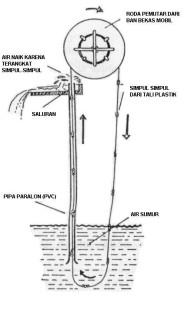 Pompa tali ini dapat menaikkan air dari kedalaman sekitar 25 m.
