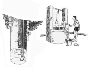 Di daerah pedesaan sebagian besar cara pengambilan air terdiri dari sumur masih menggunakan timba. Hal ini kurang menguntungkan bila dihitung dari segi waktu dan tenaga yang dipakai untuk menimba air.